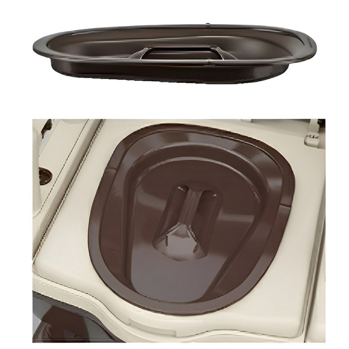 蓋の出っ張りが入り込み代になり便座穴にフィットします。しっかり蓋をすることで臭い対策になります。便座を持ち上げずに上から蓋ができ、手を触れなくていいので衛生的です。