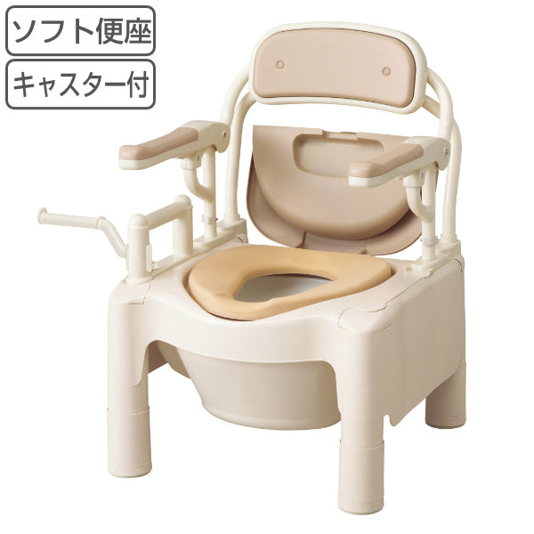 ポータブルトイレ ソフト便座 高さ49cm キャスター付 ちびくまくん 介護用 FX-CPはねあげ 日本製