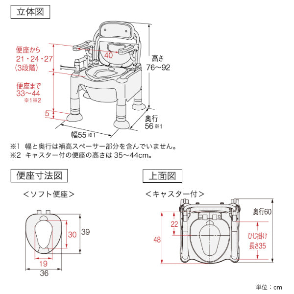 | サイズ | 約 幅55×奥行60×高さ76〜92(cm) (便座までの高さ:35〜44cm) |