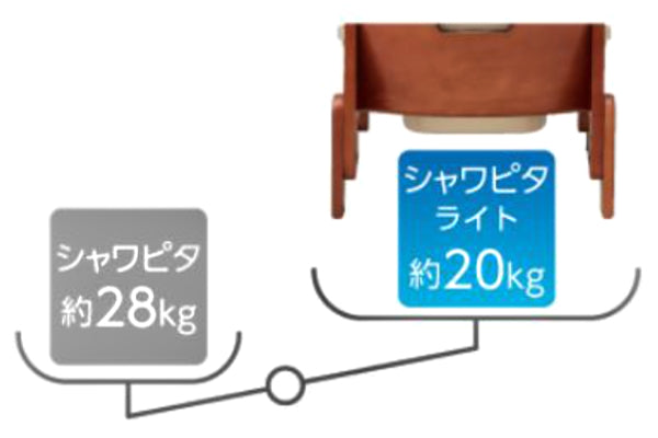シャワー機能付きトイレでは最小クラスの本体幅54cm。コンパクトでもゆったり座れるようにひじ掛け内寸は42cmを確保しています。構造をコンパクト化、シンプル化して、同シリーズ<シャワピタ>より約8kg軽くなっています。