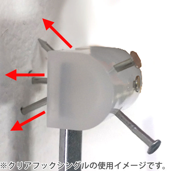 商品詳細 ![]() 細ピンがクロスして壁をしっかりキャッチ! 細ピンがしっかりクロスして壁をキャッチ!スマートな見た目ですが、安全荷重は10kgと重量物でも安心して掛けることが出来ます。 また、取り外した際の穴は小さく、お家の壁のキズを最小限に抑えます。 ![]() コインやカナヅチを使って設置 取り付け時には細ピンをコインやカナヅチを使用して打ち込みます。 ※画像はクリアフックシングルの取り付けイメージです。 ![]() ![]() カラー