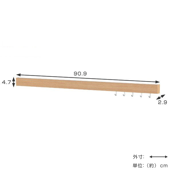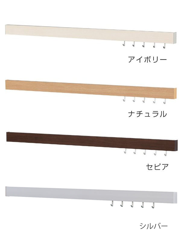 壁掛け フック ハンガーフック スリム長押 幅90cm 木目調 壁面収納 レール