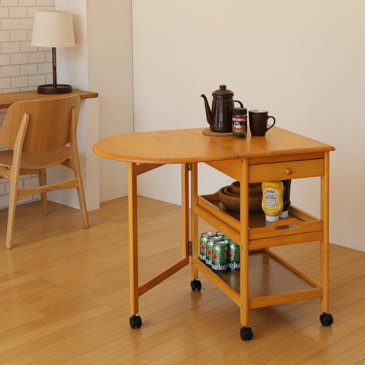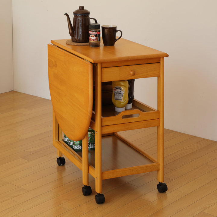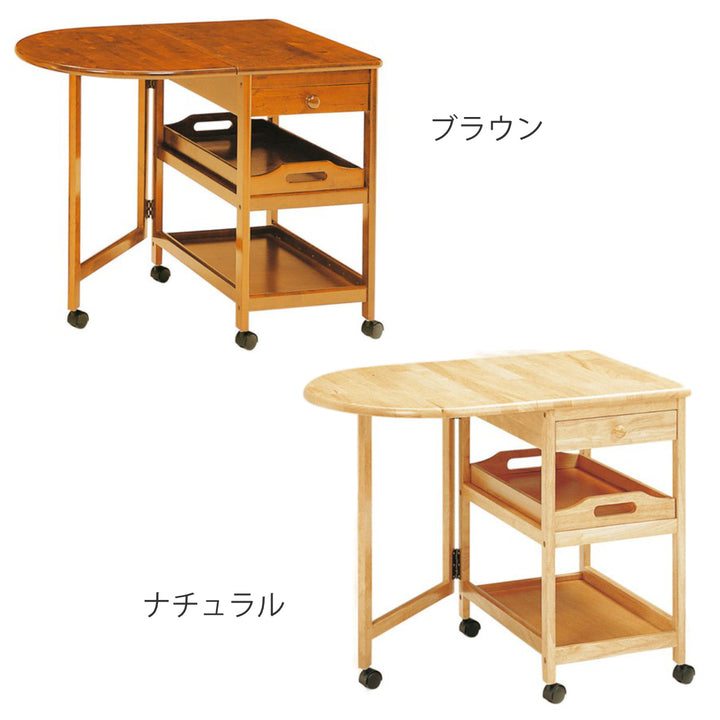 キッチンワゴン 幅42.5~85cm キャスター付 木製ワゴン バタフライ 片バタ