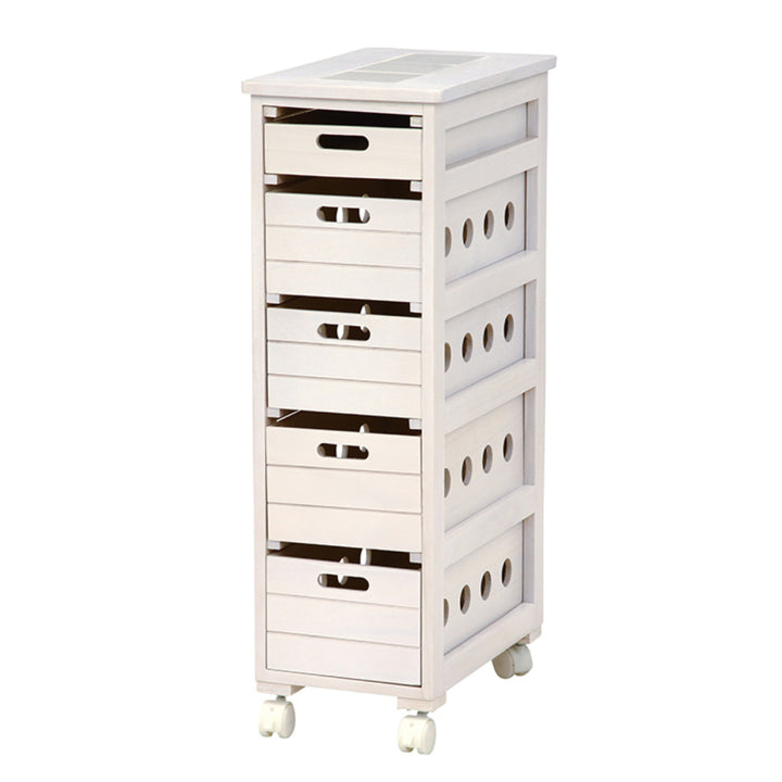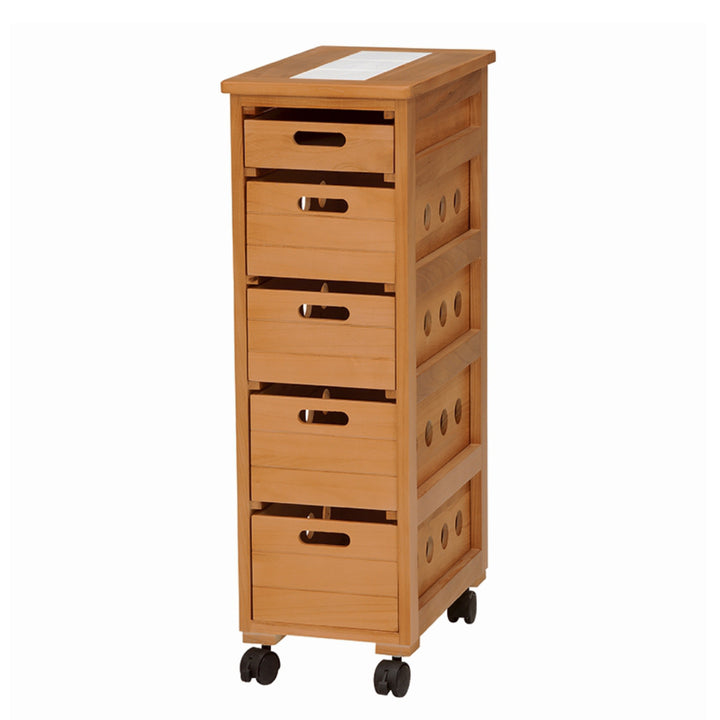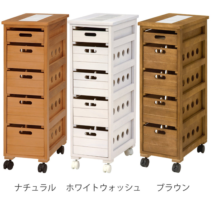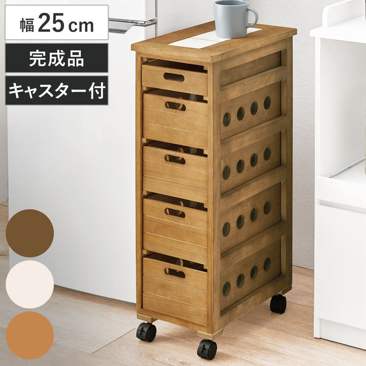 キッチンストッカー 幅25cm 5段 スリムタイプ タイルトップ 桐製 キャスター付