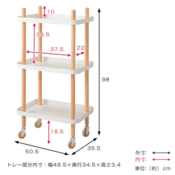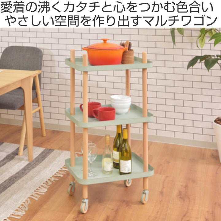 キャスターワゴン幅50.5cm3段ナチュラルデザインSylph