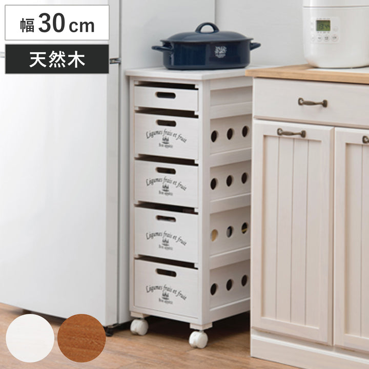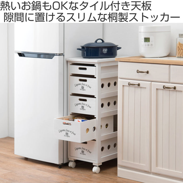 キッチンストッカー 幅30cm 5段 桐製 天然木 スリム