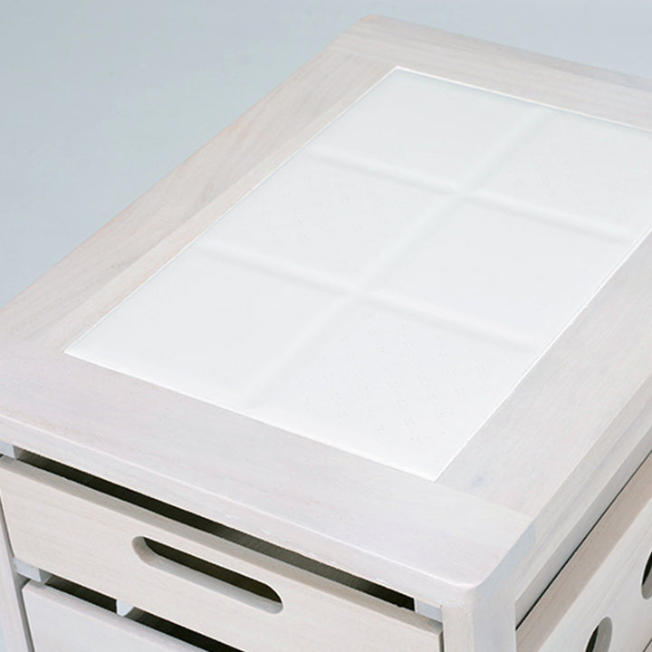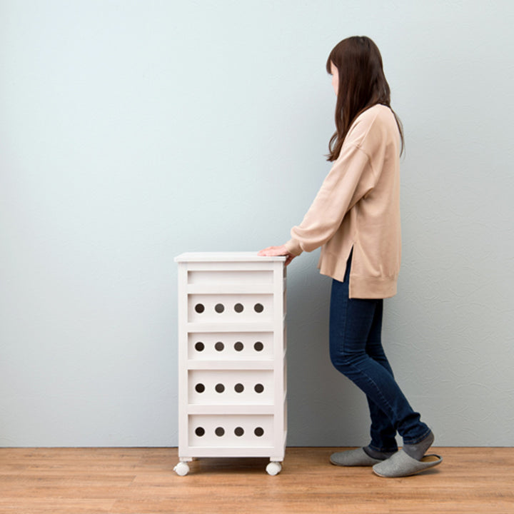 水や湿気に強い桐材を使用し、引出しの両側に穴が空いた通気性の良いデザインなので中の空気を逃がしてくれます。