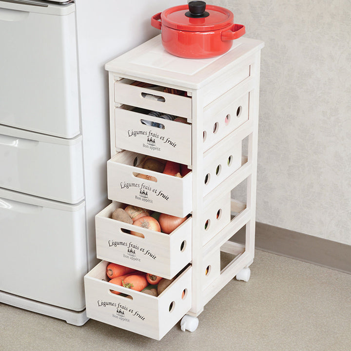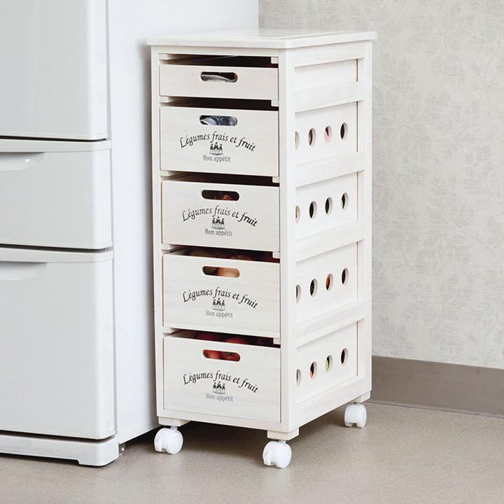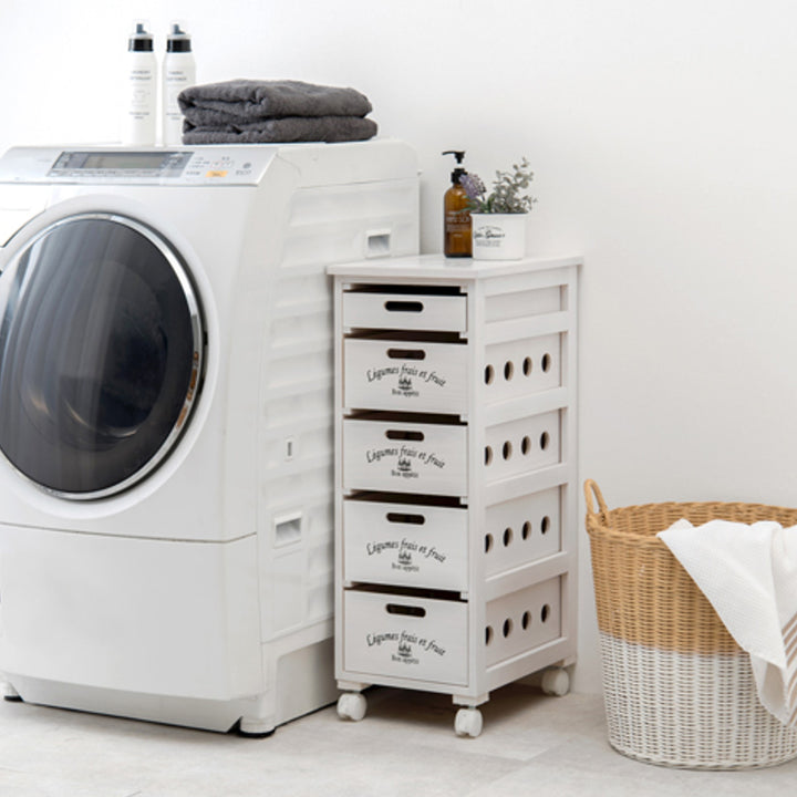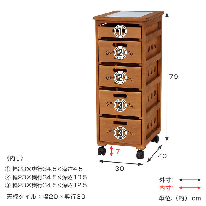 狭いスペースを有効活用できる桐製ストッカー 幅30cm 5段