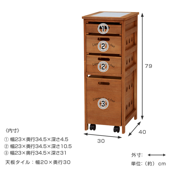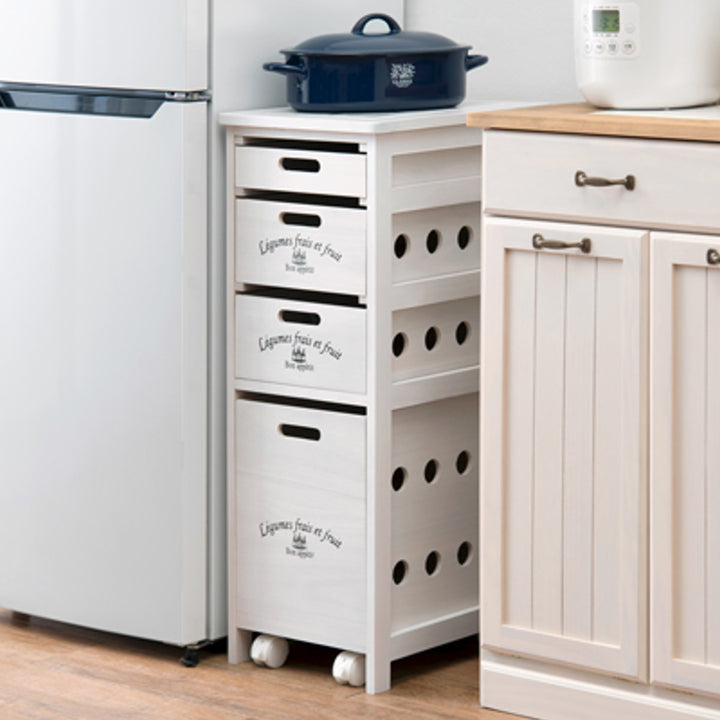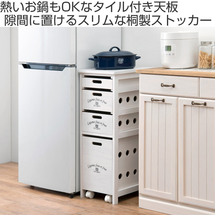 狭いスペースを有効活用できる桐製ストッカー 幅30cm 4段