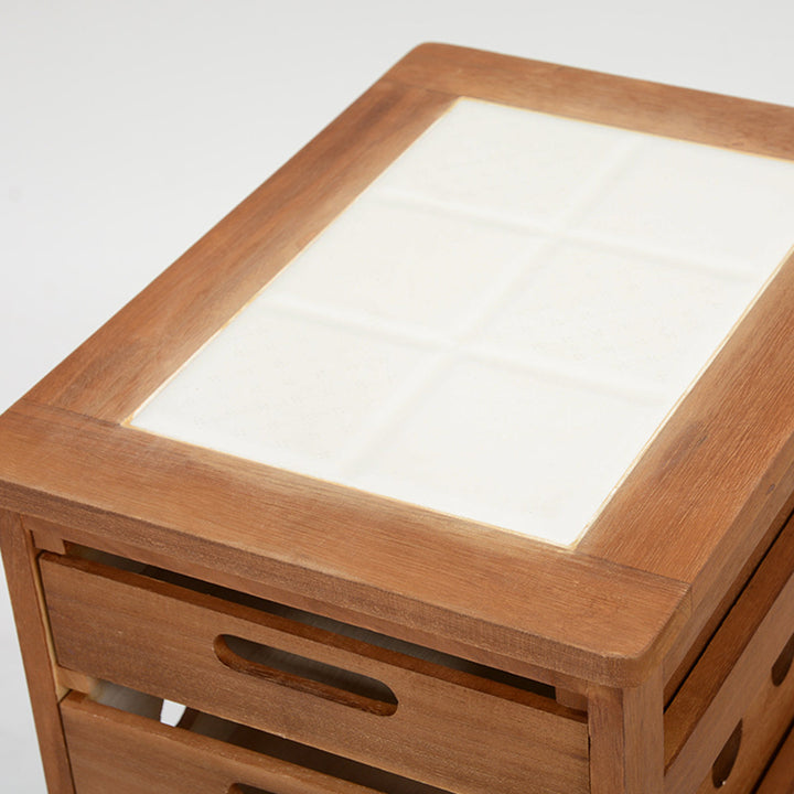 水や湿気に強い桐材を使用し、引出しの両側に穴が空いた通気性の良いデザインなので中の空気を逃がしてくれます。