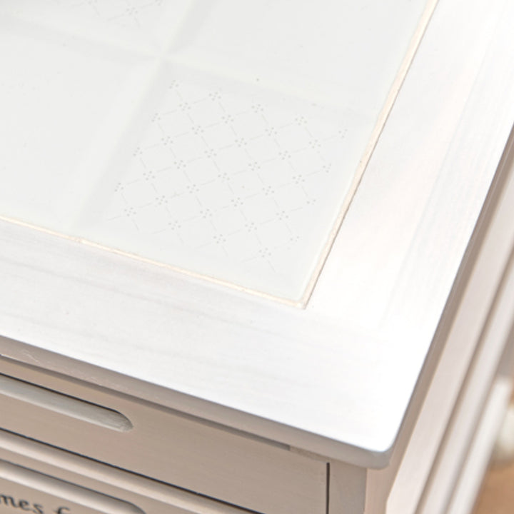 天板には熱いやかん、お鍋などもそのまま置くことができるタイル付きです。汚れてもサッと拭くだけなのでお手入れも簡単です。