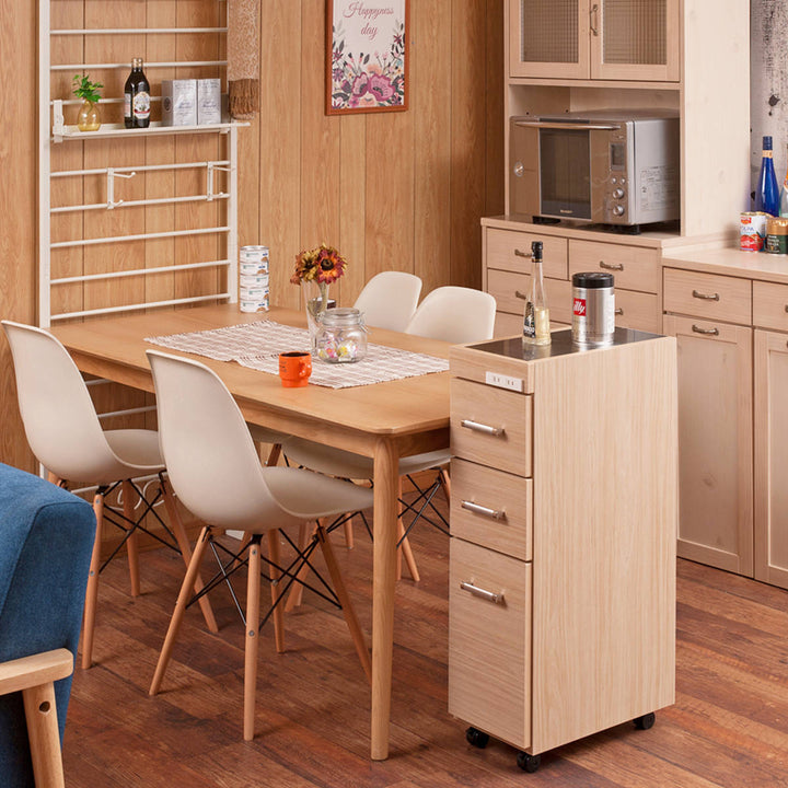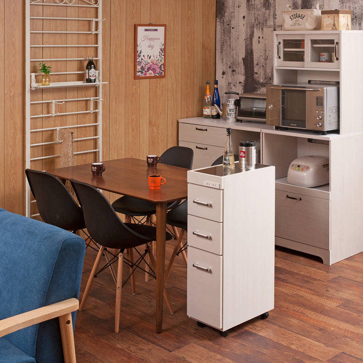 デッドスペースはもちろん隙間を有効活用できる『Sinker』シリーズです。収納だけでなくお料理の作業台としても使え、機能が充実しています。木目調やマットな持ち手など、デザインにもこだわったスリムなカウンターワゴンです。