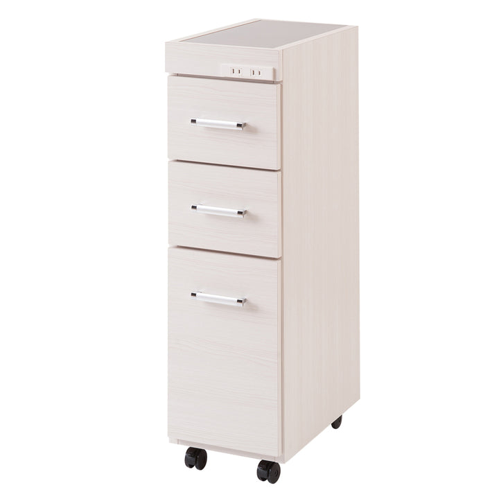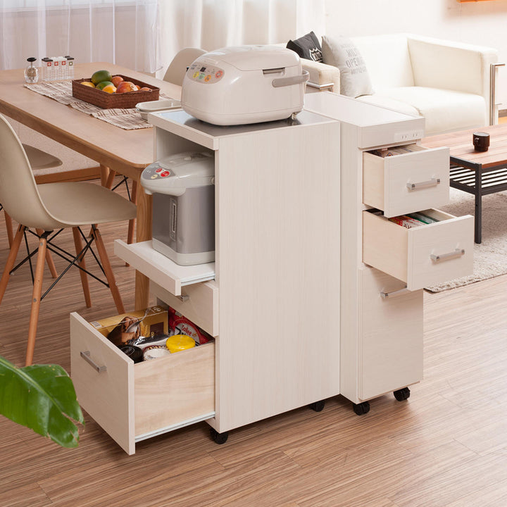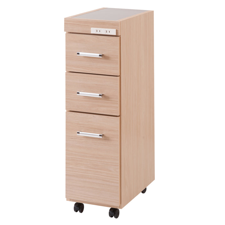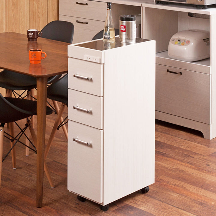 スリムキッチンワゴン 幅25cm ステンレス天板 2口コンセント 日本製 完成品