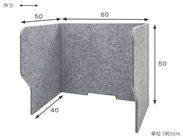 人が不快に感じる音を吸音する効果のある素材を使用しているので、話し声やパソコンキーボードのタッチ音を軽減します。高さ50cmの顔が隠れる高さなので、視線を感じることなく仕事に集中でき、セキュリティー対策としてもおすすめです。