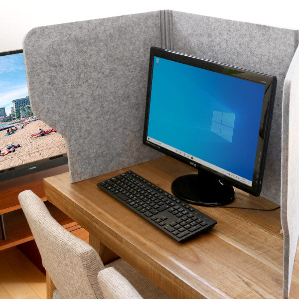 フェルメノンのウイルスガードスタンドは厚さ12mmの高密度な硬質吸音フェルトボード。マスクより繊維が細かく高密度なので、飛沫ガードとして最適!対面レイアウトの職場でも安心して仕事ができます。