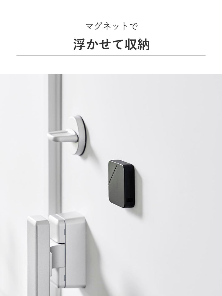便利なストラップ用穴付きで、引っ掛けて設置することもできます。マグネットが使えない場所でも収納に困りません。