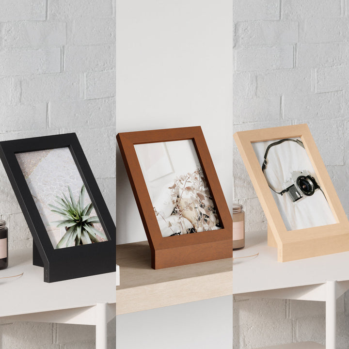 フレームは曲がった形状が特徴的で、部屋から離れた場所からもしっかりと写真を見ることができるように設計されています。機能性とデザイン性を兼ね備えた商品です。※対応の写真サイズは2L判です。