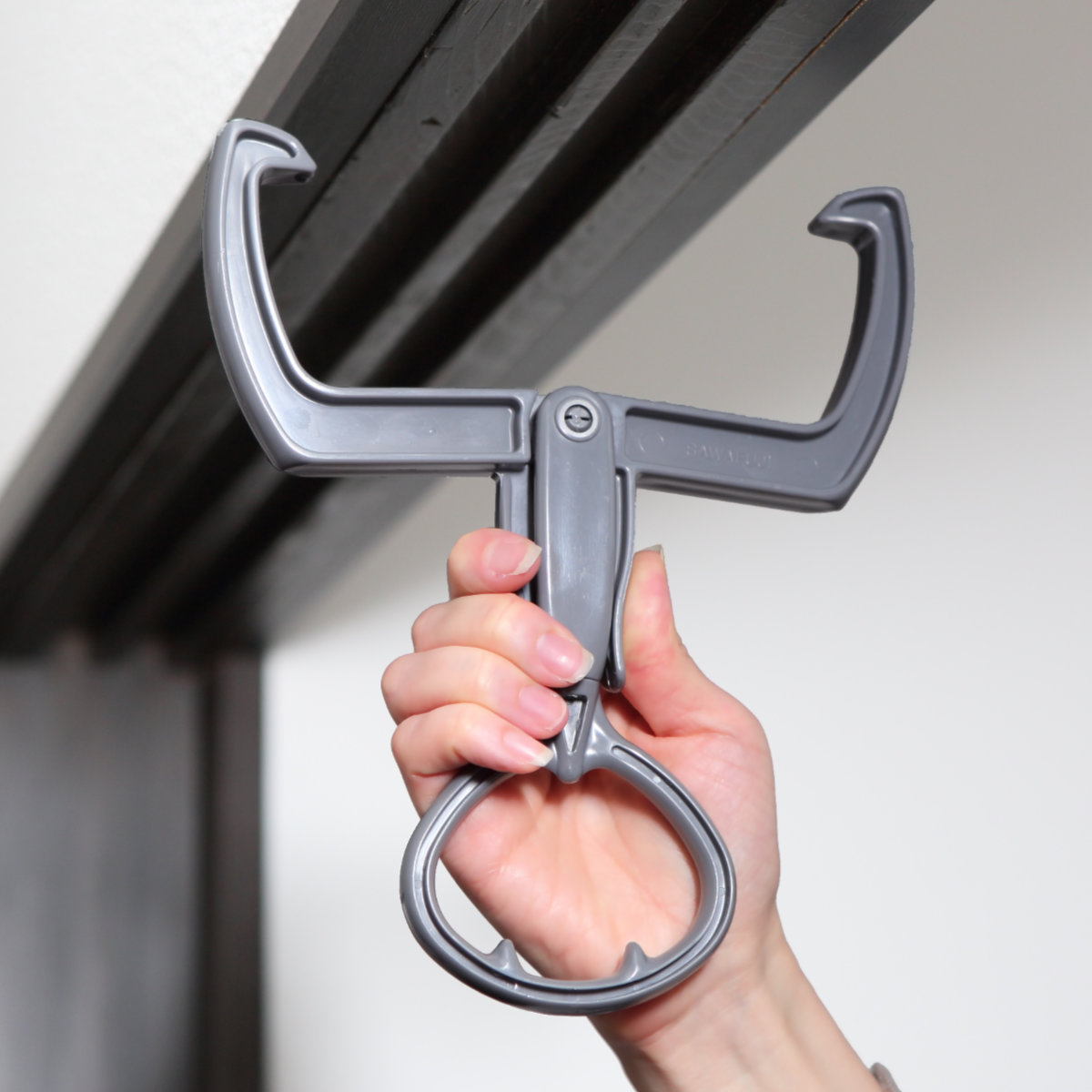 取り付けの時の工具は一切不要です。握れば大きく開くアーム部分を鴨居に挟むだけなので誰でも簡単に取り付けることができます。