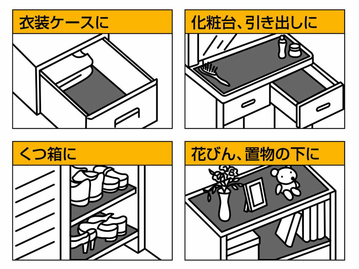 流し台の下以外にも、衣装ケースやくつ箱、引き出しなどにお使いいただけます。