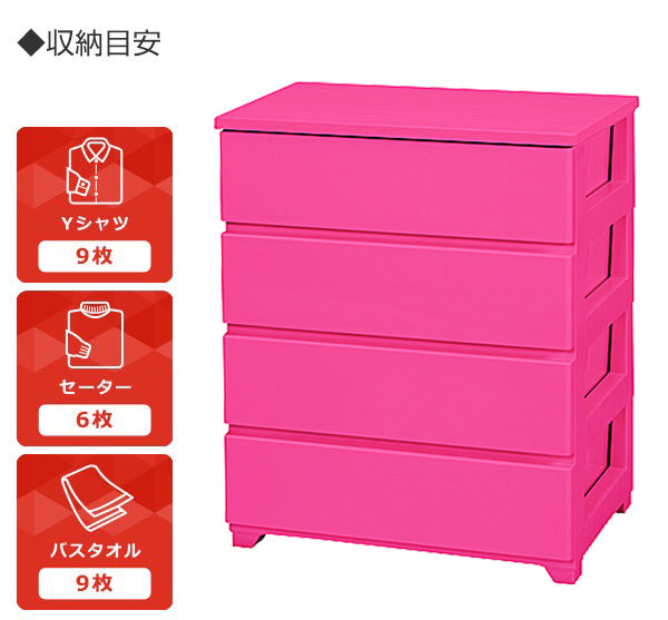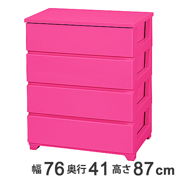 収納ケース ワイド 約 幅76×奥行41×高さ87cm 4段 カラースタイルチェスト ピンク