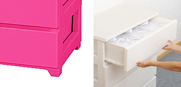 シンプルフォルムのチェストだからリビングでもマイルームでも思いのままフィットします。引き出しをしめてしまえばすっきり見せることができ、見た目のデザインによってお部屋の雰囲気づくりができる点がなんといっても魅力です。