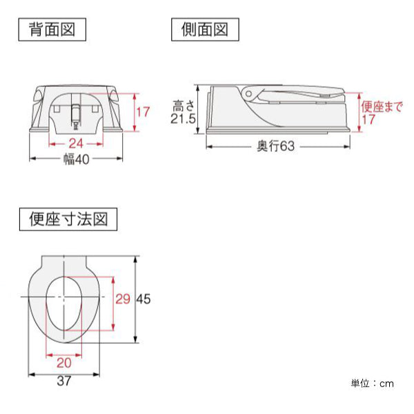 | サイズ | 約 幅40×奥行63×高さ21.5(cm) (便座までの高さ:17cm) |