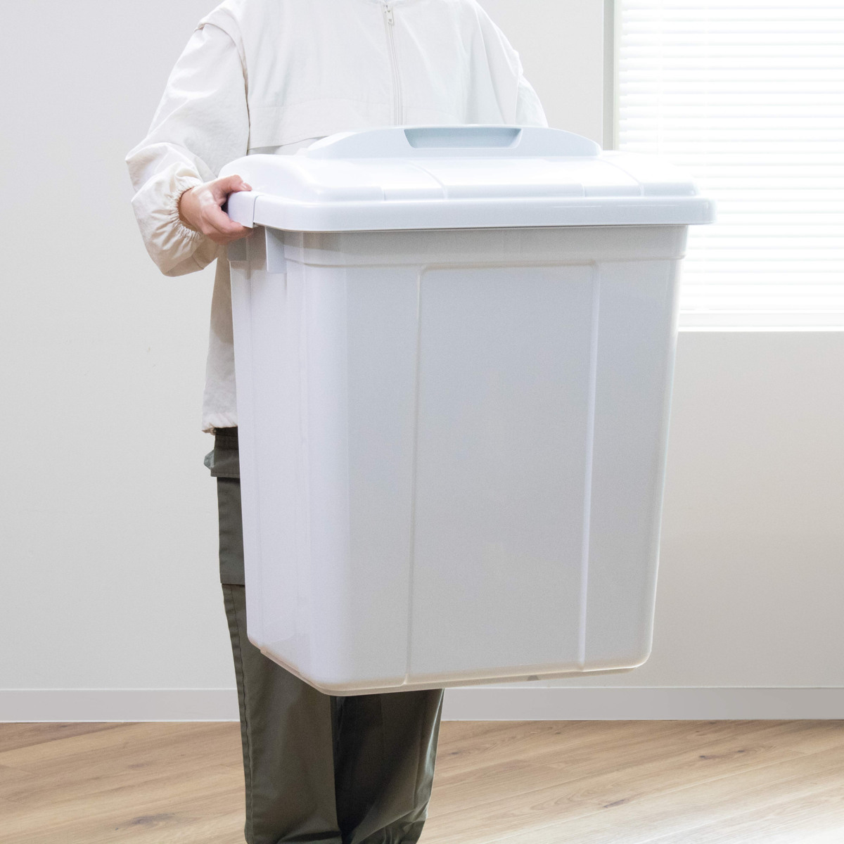本体は水に強く、軽量で扱いやすいポリプロピレン製なので、屋内外問わずお使いいただけます。ゴミ収集日まで間があっても溜まったゴミをストックできます。投入口が広いのでお菓子のパッケージや2Lのペットボトル、梱包材などの大きいゴミも捨てられます。