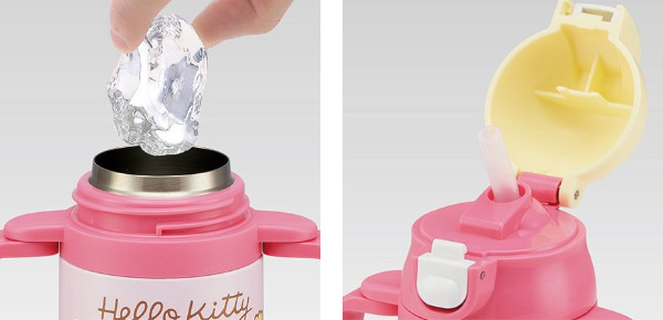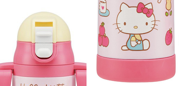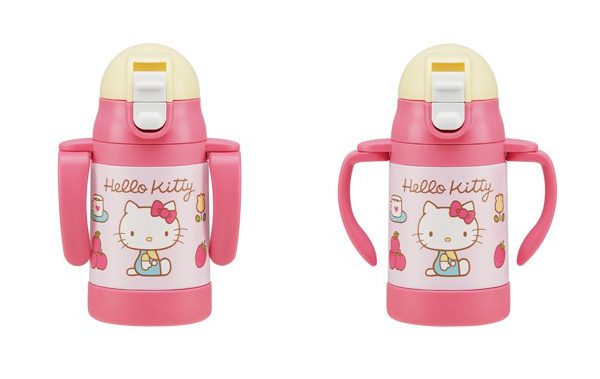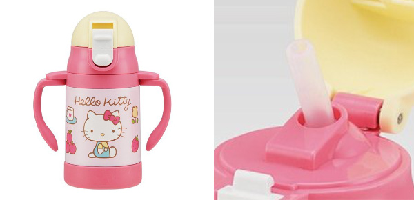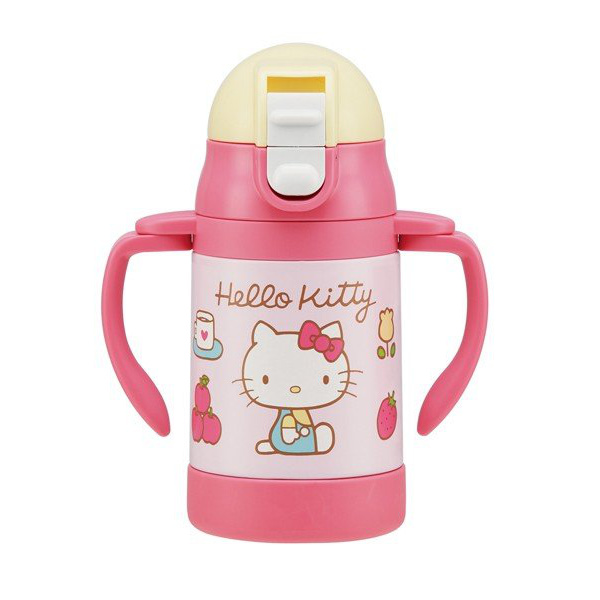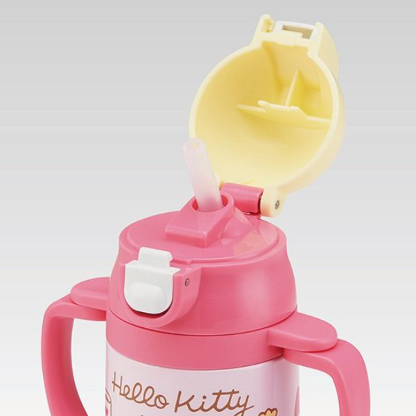 赤ちゃんの小さな手でもしっかりと持ちやすい、持ち手が両方についたベビーストローマグです。真空二重構造なので、夏でも冷たさをキープしてくれます。カチッと閉まる漏れないキャップや、滑りにくい底カバーなど使いやすさを追求して作られています。容量約240mlと初めてのマグにピッタリなサイズです。大人から子どもまで、みんなに大人気のハローキティがデザインされていて、楽しくストロー飲みの練習が始められます。