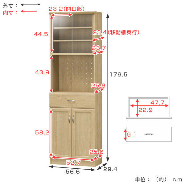 | サイズ | 約 幅56.6×奥行29.4×高さ179.5(cm) 耐荷重:棚板・移動棚7kg |