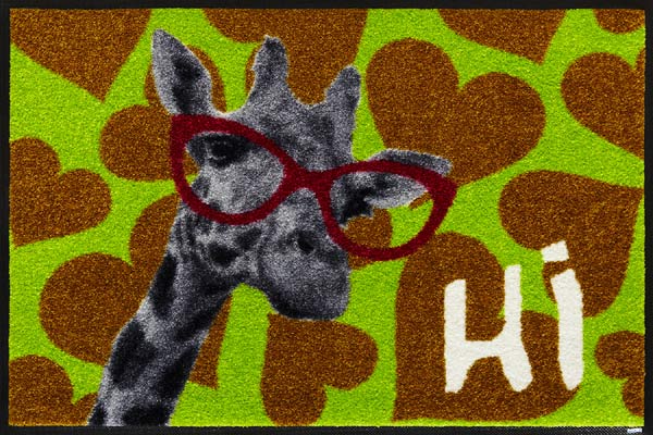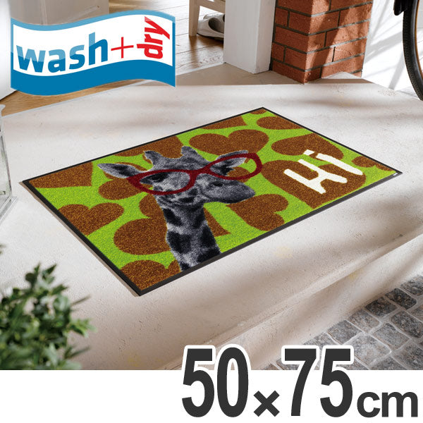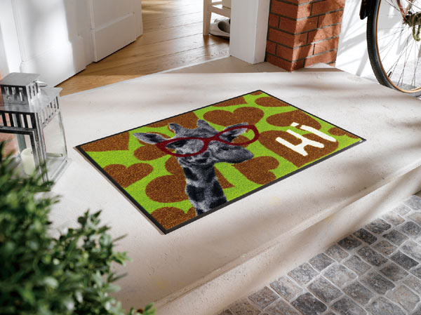 愛嬌たっぷりのおしゃれなキリンさん澄んだ瞳に大きな眼鏡が良く似合うおしゃれなキリンさん。リアルなキリンの表情とずれたメガネがユーモラスなデザインです。キリンをあえてモノクロにすることで”可愛いけど可愛くなりすぎない”大人も子供も楽しめるおしゃれな1枚になりました。 おすすめポイント 裏面ラバー仕様のインテリアマットで最強の滑り止め効果日本では裏面ラバー仕様のインテリアマットは非常に珍しいですが、土足の文化である欧米では非常に一般的です。どんな床にも強力にフィットするので、マットがめくれたり、ずれたりすることがなく、小さなお子様やご高齢の方がいるご家庭でも安心です。屋外、玄関先、ベランダ出入り口等でも使用いただけます。 ※裏面ラバーは特殊合成ゴムで、耐久性の高いゴムです。 床面を綺麗に保ちますマット表面に大量の水や油をこぼしても完全にマットがキャッチしますので、床面を汚してしまうことがありません。 ![]() 家庭用洗濯機で水洗いが可能 ご家庭の洗濯機でマットを洗う事に抵抗のあるお客様には、デッキブラシでのこすり洗いやシャワーでの水洗いをオススメします。 ※付属の取扱い説明書をよくお読みください。 屋内屋外でも使える便利なマット玄関やリビング、キッチンは勿論バルコニーなどの屋外でも利用でき、インテリアのアクセントとしてご家庭内をより豊かで彩り溢れた空間に演出してくれます。
