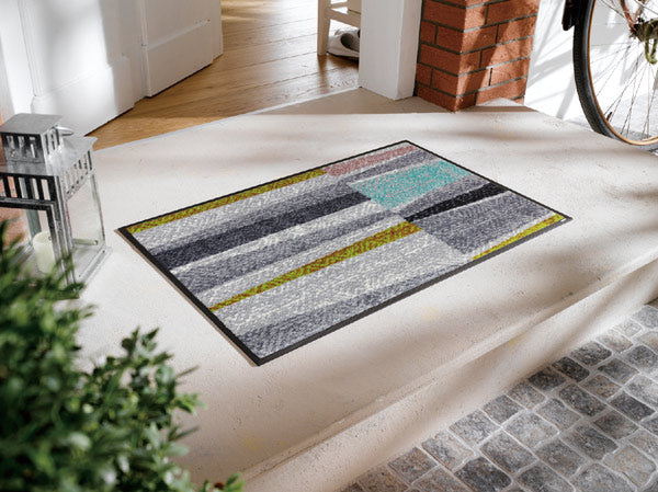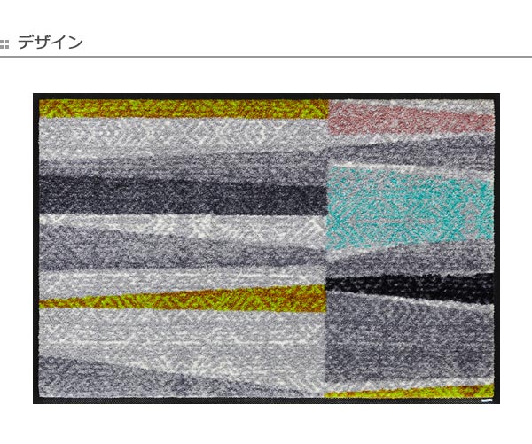 落ち着いたカラーの幾何学模様グレーを基調にアクセントでカラーを取り入れたおしゃれなデザイン。差し色があることでお部屋全体が暗くなりすぎないようになっています。北欧テイストにもぴったりな1枚です。 おすすめポイント 裏面ラバー仕様のインテリアマットで最強の滑り止め効果日本では裏面ラバー仕様のインテリアマットは非常に珍しいですが、土足の文化である欧米では非常に一般的です。どんな床にも強力にフィットするので、マットがめくれたり、ずれたりすることがなく、小さなお子様やご高齢の方がいるご家庭でも安心です。屋外、玄関先、ベランダ出入り口等でも使用いただけます。 ※裏面ラバーは特殊合成ゴムで、耐久性の高いゴムです。 床面を綺麗に保ちますマット表面に大量の水や油をこぼしても完全にマットがキャッチしますので、床面を汚してしまうことがありません。 ![]() 家庭用洗濯機で水洗いが可能 ご家庭の洗濯機でマットを洗う事に抵抗のあるお客様には、デッキブラシでのこすり洗いやシャワーでの水洗いをオススメします。 ※付属の取扱い説明書をよくお読みください。 屋内屋外でも使える便利なマット玄関やリビング、キッチンは勿論バルコニーなどの屋外でも利用でき、インテリアのアクセントとしてご家庭内をより豊かで彩り溢れた空間に演出してくれます。