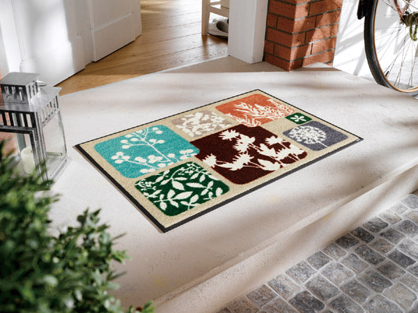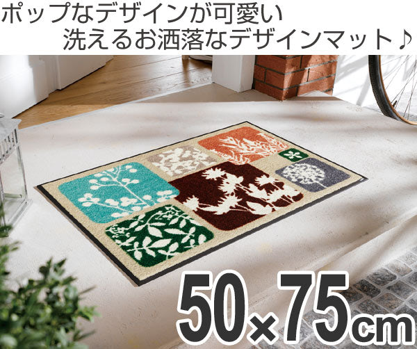 可愛くなりすぎない花柄と上品な色合いひとつずつ違う花やグリーンが描かれています。落ち着いた色合いなので、どんな空間にも自然に溶け込みます。上品で優しい空間づくりにオススメの1枚です。 おすすめポイント 裏面ラバー仕様のインテリアマットで最強の滑り止め効果日本では裏面ラバー仕様のインテリアマットは非常に珍しいですが、土足の文化である欧米では非常に一般的です。どんな床にも強力にフィットするので、マットがめくれたり、ずれたりすることがなく、小さなお子様やご高齢の方がいるご家庭でも安心です。屋外、玄関先、ベランダ出入り口等でも使用いただけます。 ※裏面ラバーは特殊合成ゴムで、耐久性の高いゴムです。 床面を綺麗に保ちますマット表面に大量の水や油をこぼしても完全にマットがキャッチしますので、床面を汚してしまうことがありません。 ![]() 家庭用洗濯機で水洗いが可能 ご家庭の洗濯機でマットを洗う事に抵抗のあるお客様には、デッキブラシでのこすり洗いやシャワーでの水洗いをオススメします。 ※付属の取扱い説明書をよくお読みください。 屋内屋外でも使える便利なマット玄関やリビング、キッチンは勿論バルコニーなどの屋外でも利用でき、インテリアのアクセントとしてご家庭内をより豊かで彩り溢れた空間に演出してくれます。
