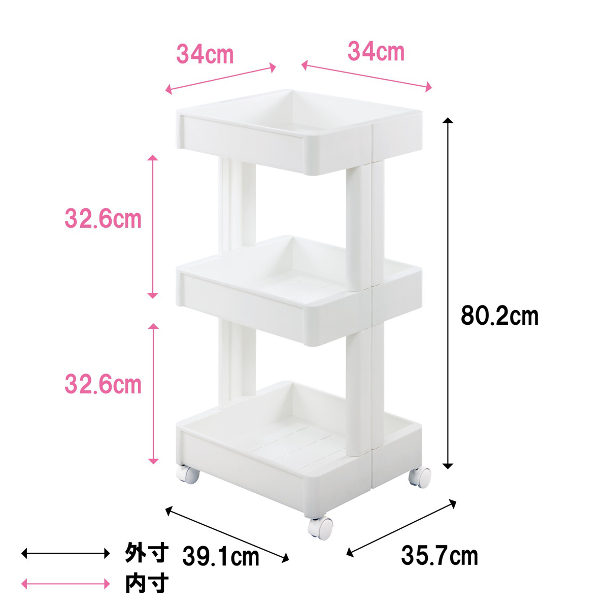 | 耐荷重 | 上段:4kg以下 中段:4kg以下 下段:8kg以下 総合計:16kg以下 |