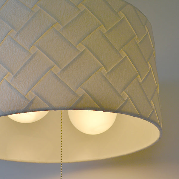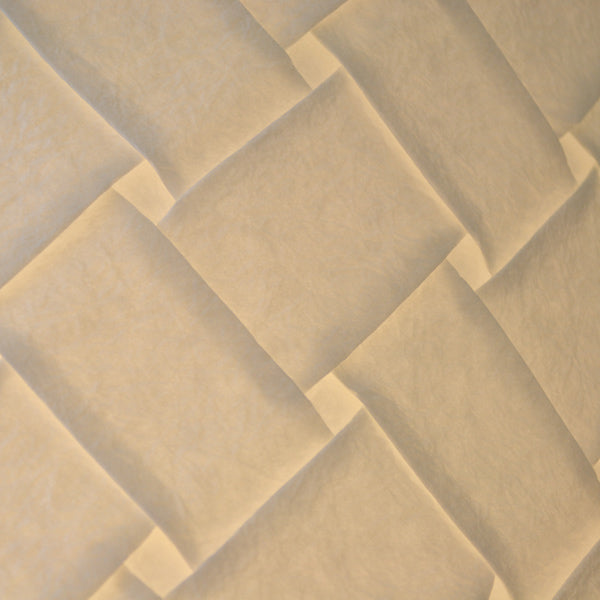 格子柄和紙一枚の和紙にひだや折り目をつけて装飾した和紙を使用しています。洋服などにも使われる加工を施した珍しい和紙です。和室以外に洋室にも合わせやすいデザインです。 |