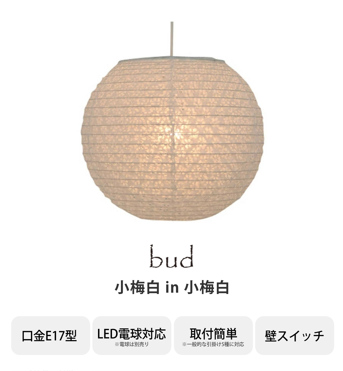 | 備考 | 対応電球:E17-40Wまで(1個) 白熱電球・電球型蛍光灯・LED電球が使用可 壁スイッチ(1灯→消灯) |