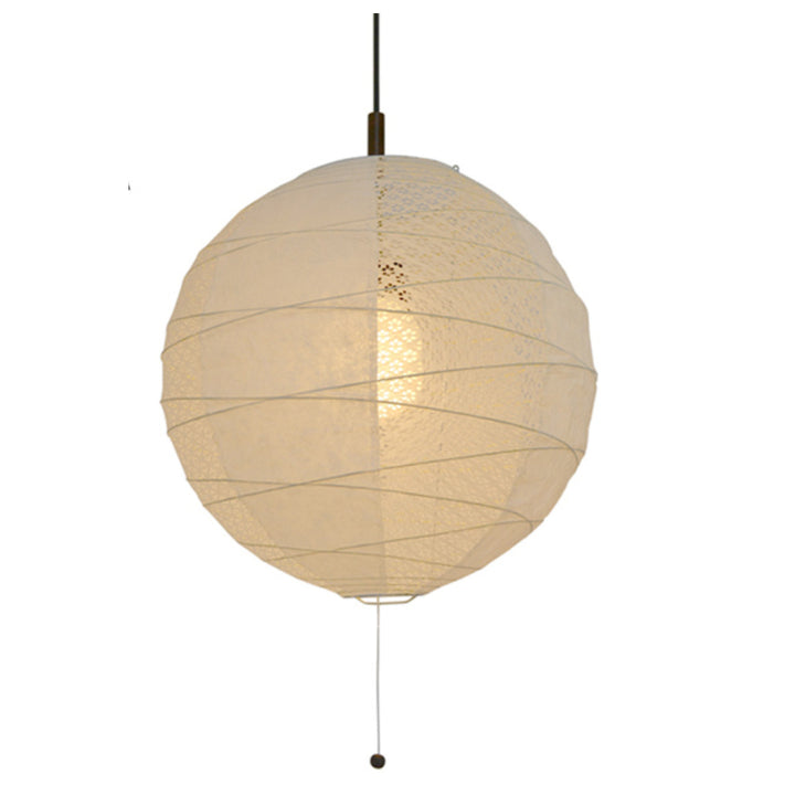 透かし和紙と揉みの入った上品な和紙をつかった提灯型ペンダントライトです。透き和紙の小梅模様と、揉みの入ったクシャッとした上品な白の揉み紙が、光をつけると浮き上がります。和モダンな雰囲気で、ご家庭だけでなく店舗照明にもオススメです。また、提灯ひごをクロスさせて巻いているのが、この商品の特徴です。