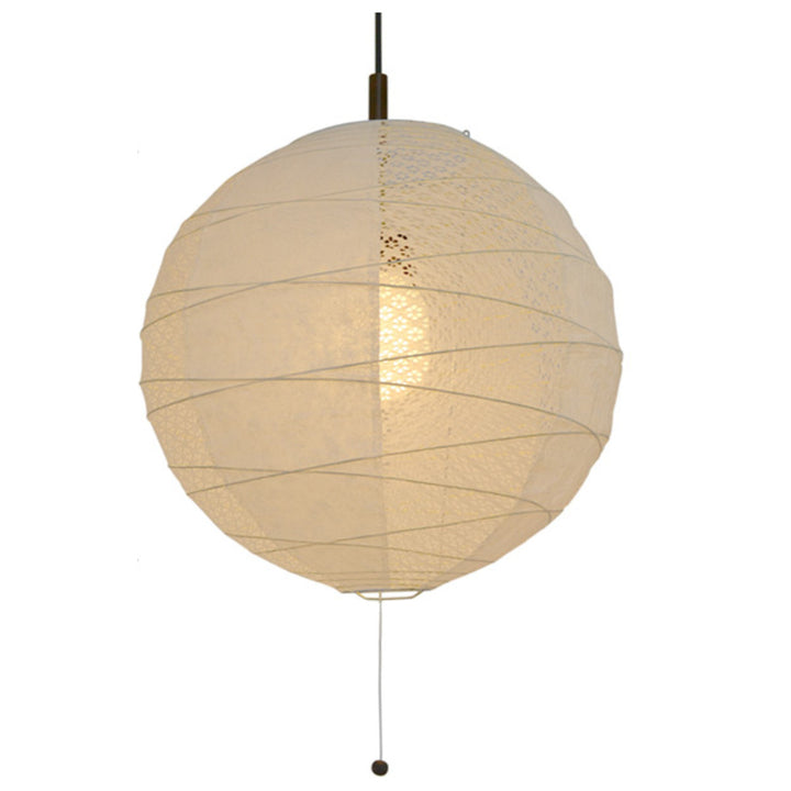 透かし和紙と揉みの入った上品な和紙をつかった提灯型ペンダントライトです。透き和紙の小梅模様と、揉みの入ったクシャッとした上品な白の揉み紙が、光をつけると浮き上がります。和モダンな雰囲気で、ご家庭だけでなく店舗照明にもオススメです。また、提灯ひごをクロスさせて巻いているのが、この商品の特徴です。