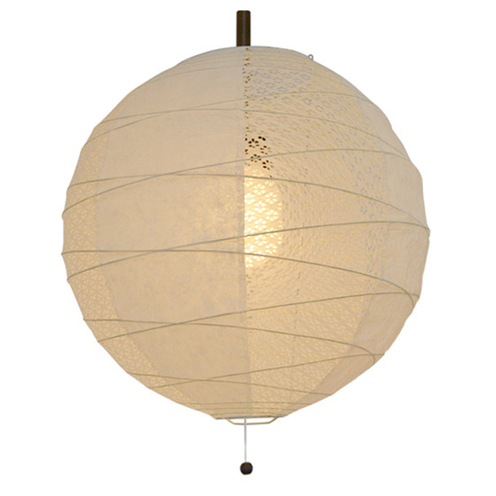 透かし和紙と揉みの入った上品な和紙をつかった提灯型ペンダントライトです。透き和紙の小梅模様と、揉みの入ったクシャッとした上品な白の揉み紙が、光をつけると浮き上がります。和モダンな雰囲気で、ご家庭だけでなく店舗照明にもオススメです。また、提灯ひごをクロスさせて巻いているのが、この商品の特徴です。