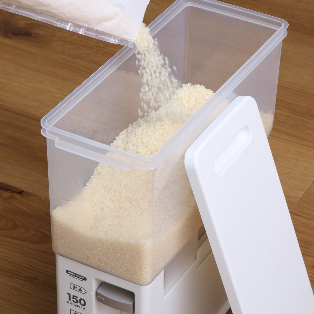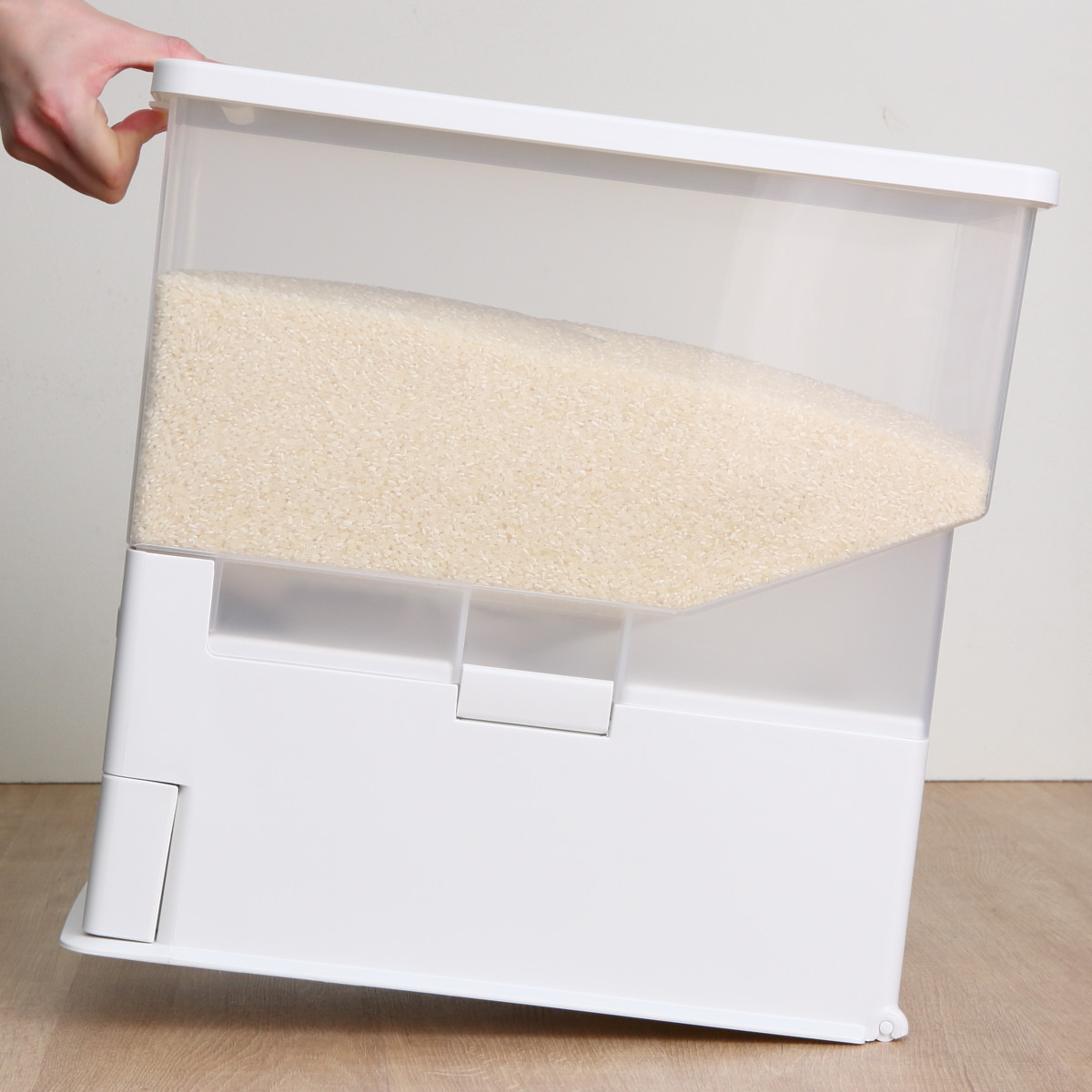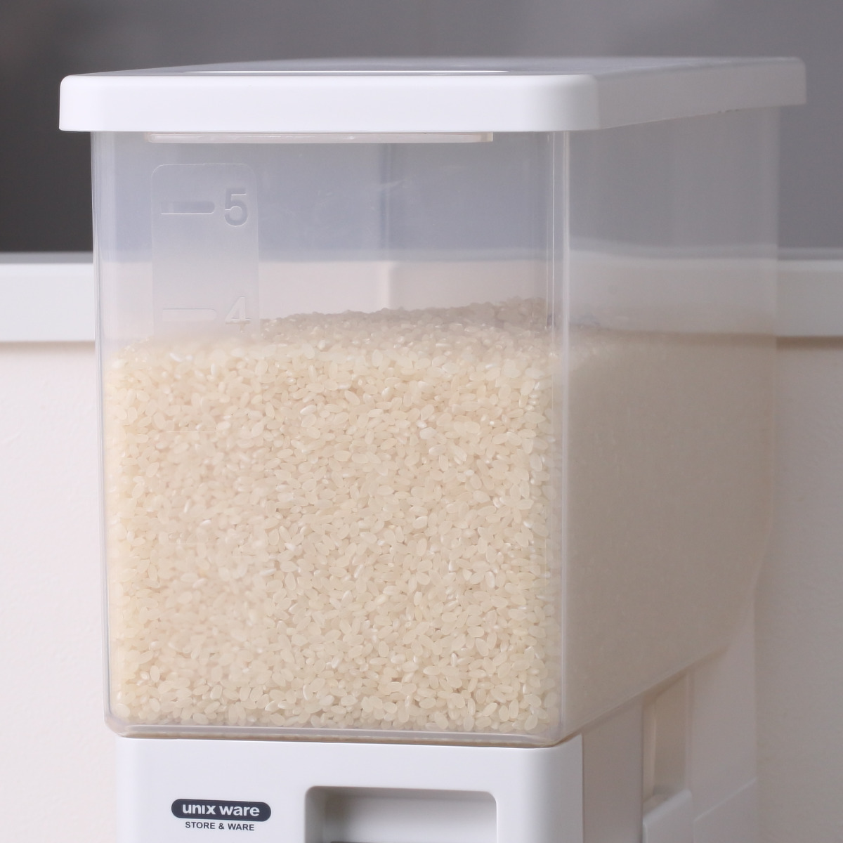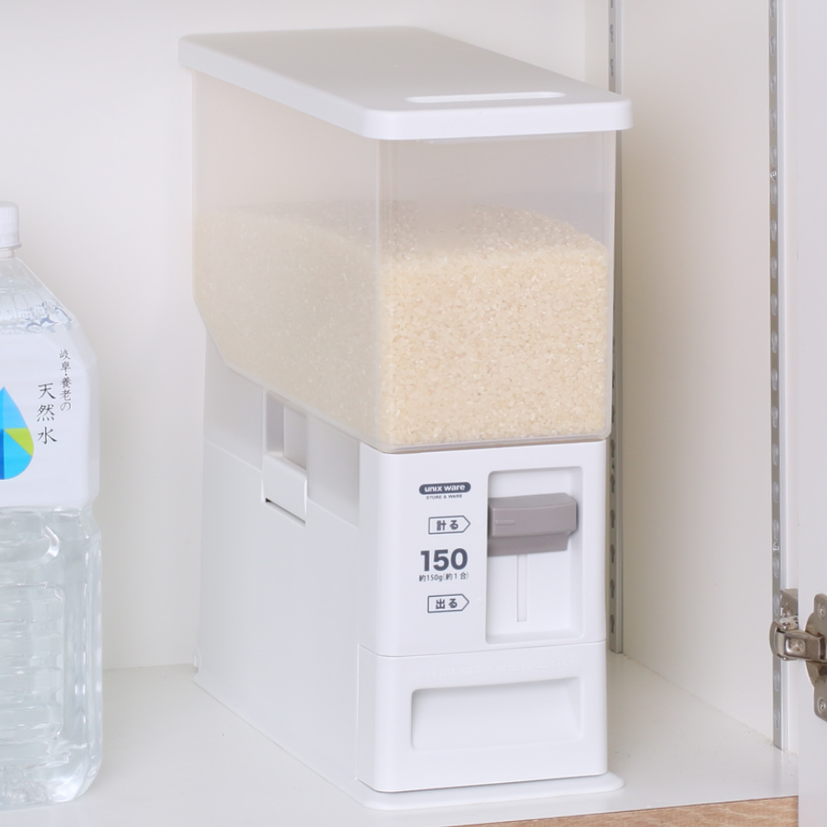 | 材質 | 本体・蓋・止め具・引き出し・キャスター:ポリプロピレン 計量器・スライドレバー・無洗米アダプター:ABS樹脂 ネジ:ステンレス鋼 計量器カバー:ポリプロピレン、発泡ポリエチレン |