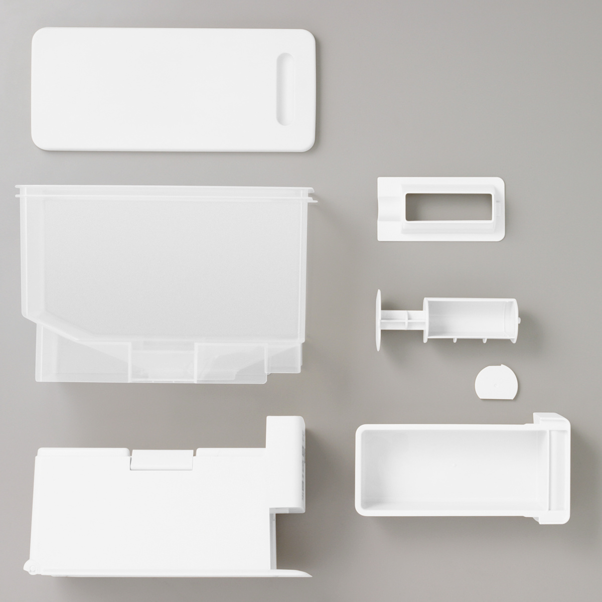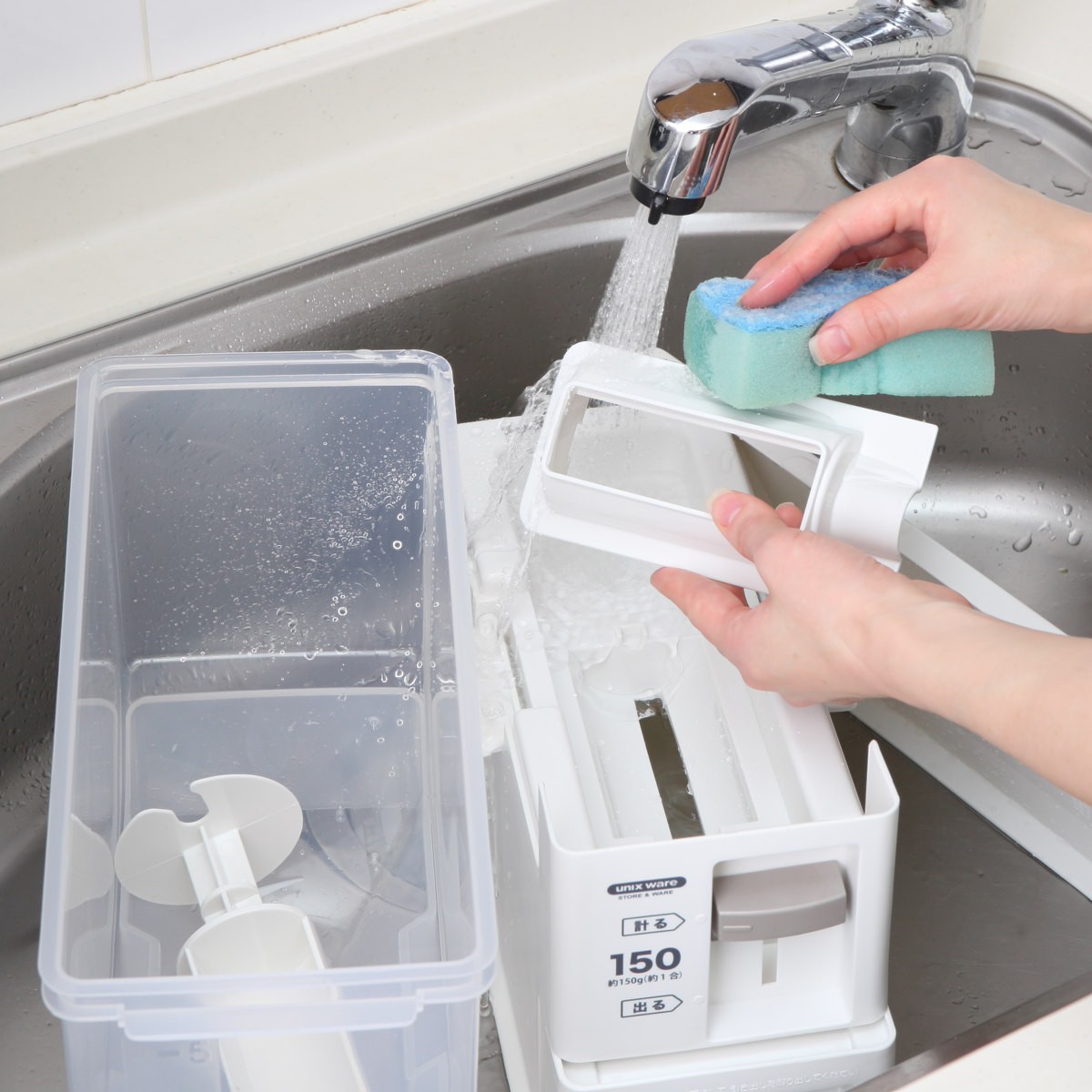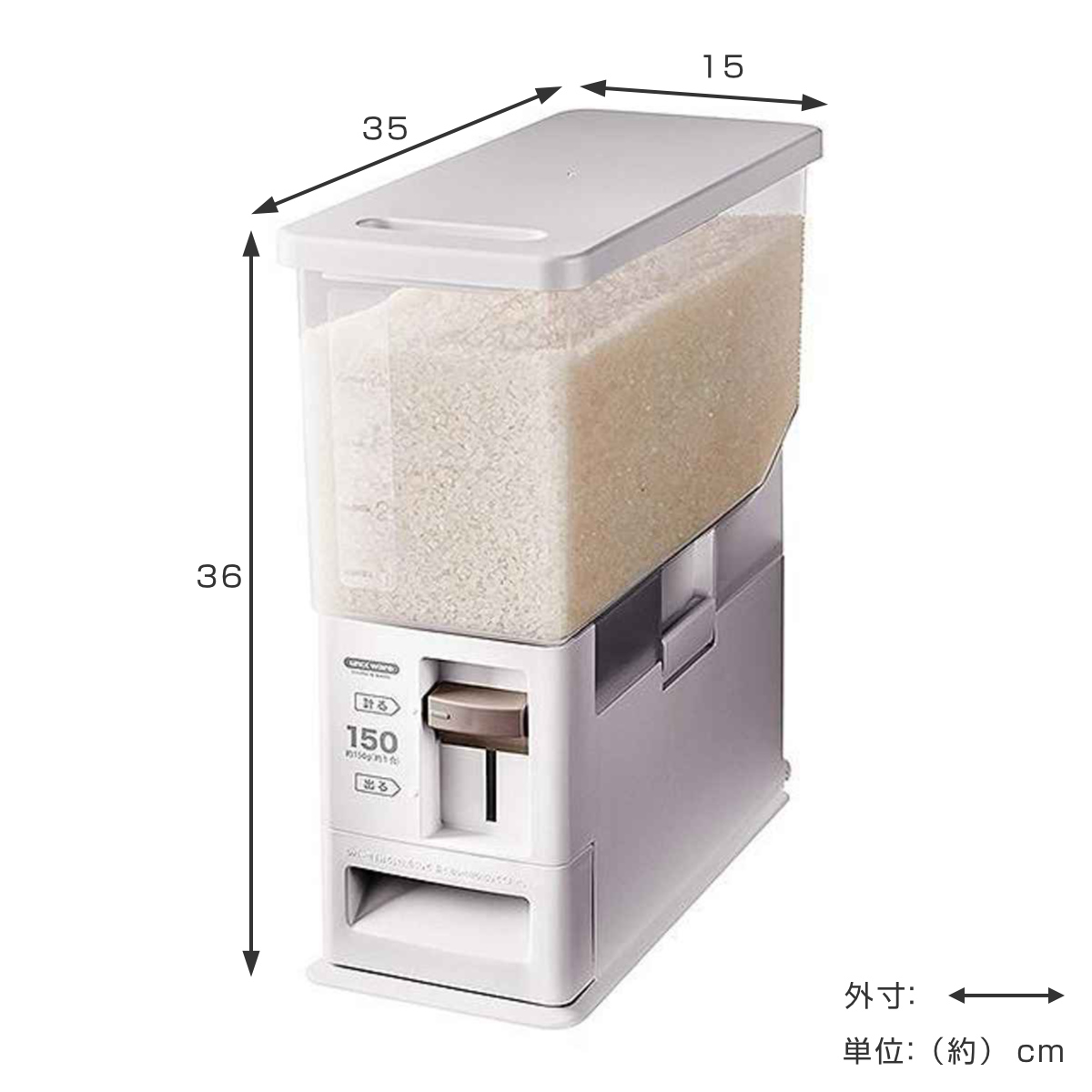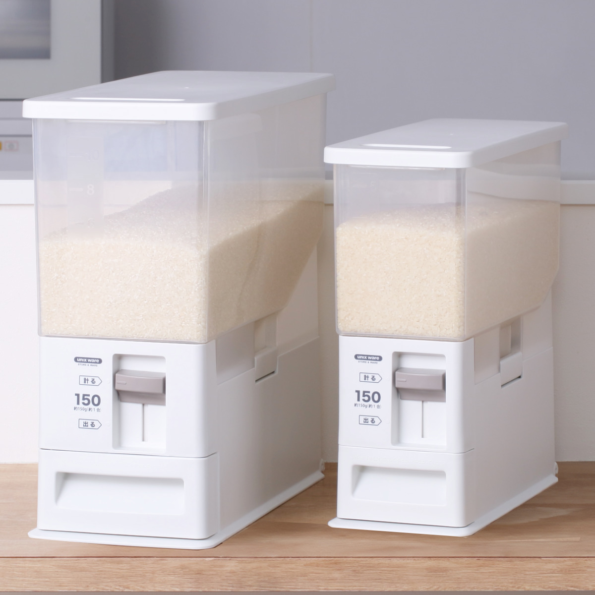 | 材質 | 本体・蓋・止め具・引き出し・キャスター:ポリプロピレン 計量器・スライドレバー・無洗米アダプター:ABS樹脂 ネジ:ステンレス鋼 計量器カバー:ポリプロピレン、発泡ポリエチレン |