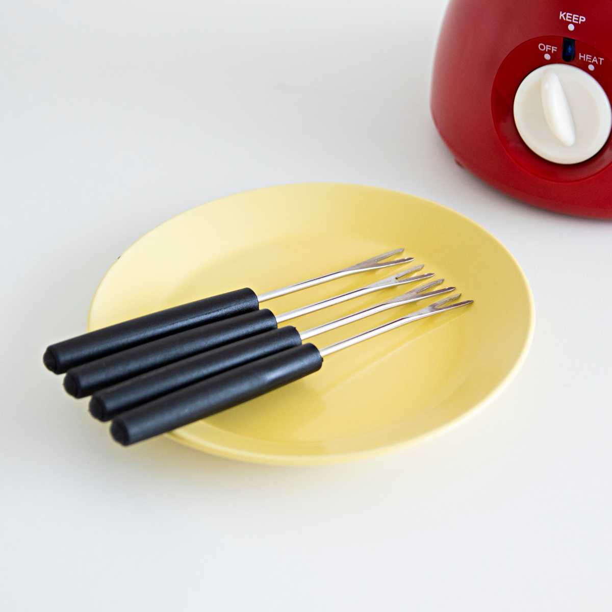 みんなで楽しめるフォンデュフォーク4本付きです。材料があればすぐに使用できます。