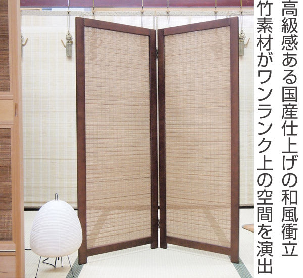 ![]() おすすめポイント 高級感ある天然木の枠に、デザイン性溢れる竹生地高級感あるブラウンの天然木の枠にデザイン性溢れる竹生地をはめ込んだ、国産仕上げの高級和風衝立です。間仕切りとしてはもちろん、インテリアのアクセントとしても活躍します。和の雰囲気をグッと引き上げてくれる衝立です。 ●お部屋の間仕切りや模様替えにも最適! ●竹のほどよい透け感でさりげなく目隠し ●ワンルームをパーティションで間仕切りして有効活用 ●お部屋のアクセントとしてはもちろん、光の調節にもおすすめ! ●リビングに設置すれば書斎スペースが完成! ●子供部屋で、兄弟姉妹で勉強の邪魔にならないよう衝立で仕切りを ●間接照明と組み合わせてワンランク上のインテリア空間を演出 虫やカビが発生しにくい、スモークドバンブー燻製された竹を使用し、落ち着いた雰囲気に織り上げました。竹のやさしい風合いと糸掛けが上品なイメージの生地です。燻製することにより、虫やカビを発生しにくくしています。 洋室やリビング・玄関などにも落ち着いた色味・風合いなので、和室だけではなく洋室やリビング・玄関などにも合わせていただけます。 サイズ