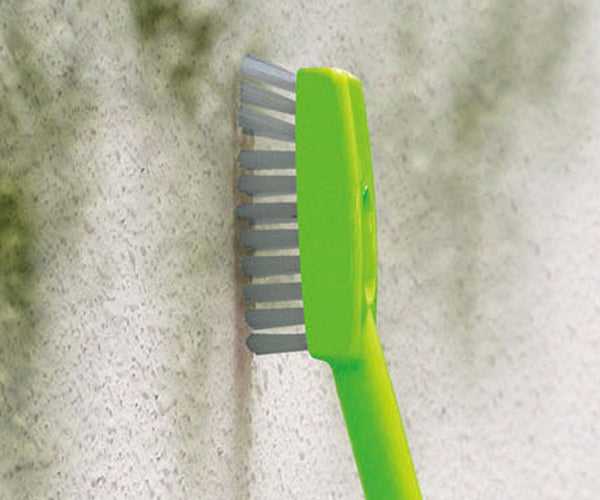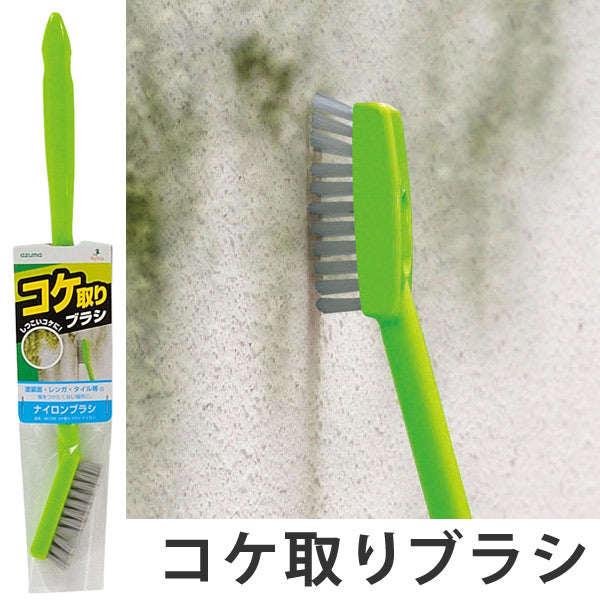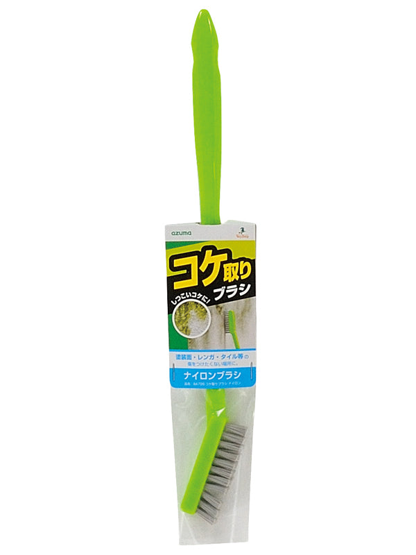 傷をつけたくない場所のコケを丁寧に落とすナイロン製の柔らかめのブラシが、塗装面・レンガ・タイル・鉢などの面に傷をつけずにコケを落とします。力を入れて使用したい時にヘッドが握れる指置き付きで、広い面のお掃除でも疲れにくい形状です。