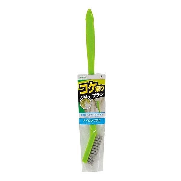 ナイロン製の柔らかめのブラシが、塗装面・レンガ・タイル・鉢などの面に傷をつけずにコケを落とします。力を入れて使用したい時にヘッドが握れる指置き付きで、広い面のお掃除でも疲れにくい形状です。