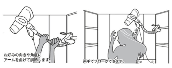 ●ドライヤーが固定できるので両手が空いてラクにブローができます。