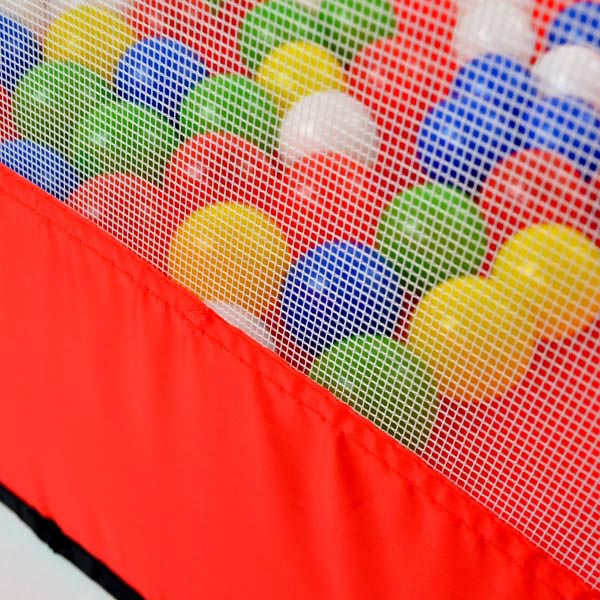 テントの両側面はメッシュ素材を使用しており、中の様子がよく分かります。さらに、テントの入り口をまとめて上にあげておくこともできるため、中で遊ぶお子さまの姿がすぐ確認でき、安心して遊ばせることができます。通気性が良く中に熱気がこもらないというメリットも♪