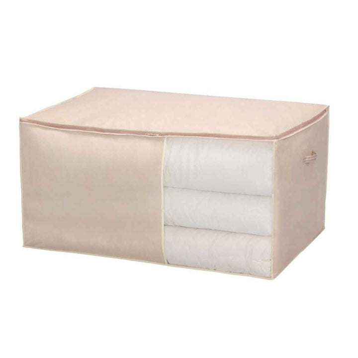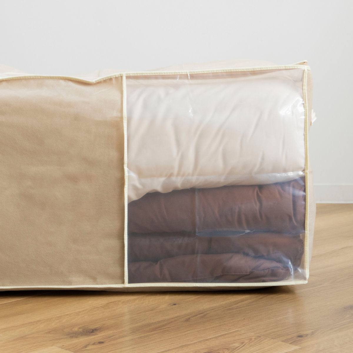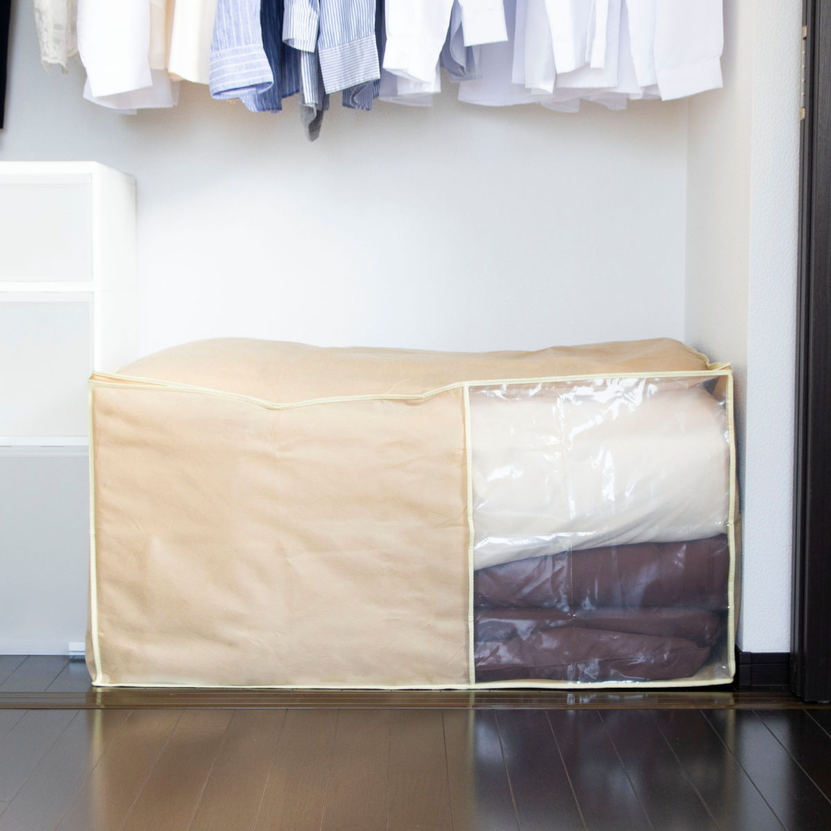 通気性に富んだ素材の不織布は湿気がこもりにくいのが特徴です。カビやニオイが発生しにくく保存用に適しています。来客用の寝具の長期保管も安心です。