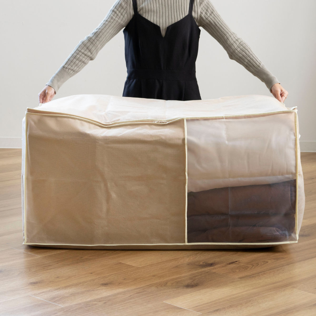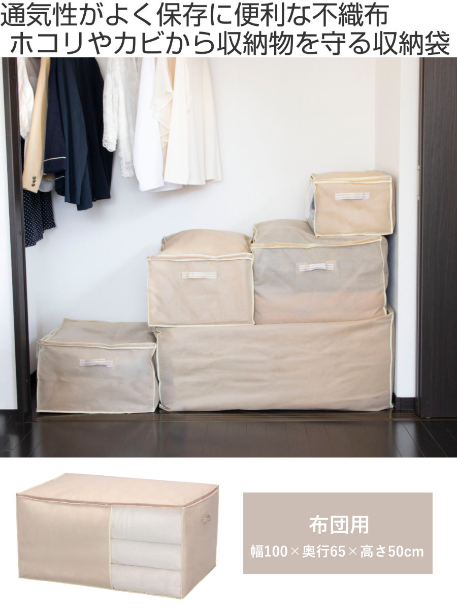 使っていないロング&かさ高の布団の収納にピッタリな大型サイズの収納袋です。不織布のやわらかい生地で収納物をやさしく守り、ホコリやゴミをしっかりガード。清潔に保ちながら大切に収納できます。