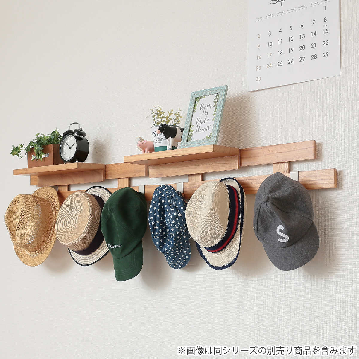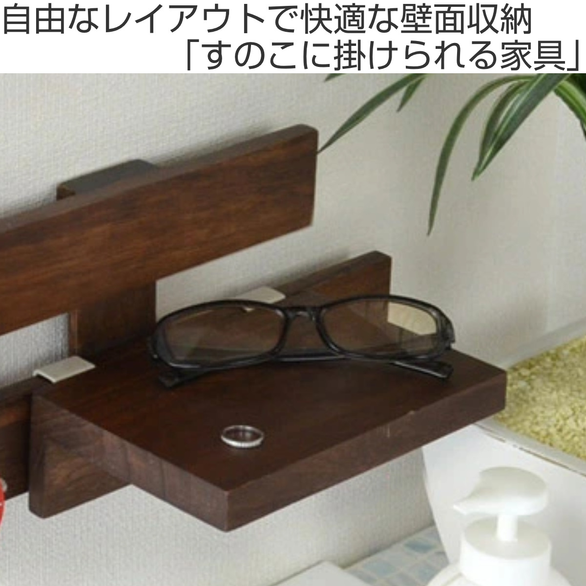 「壁に付けられるすのこ」に設置できる専用オプション「すのこに掛けられる家具」です。シリーズを組み合わせることで、収納やディスプレイの幅が広がり、スペースを有効活用できます。