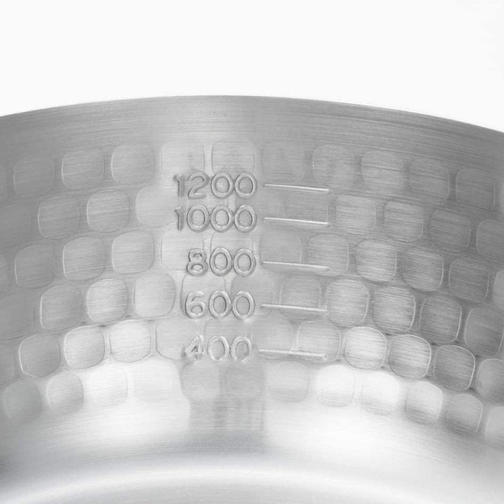 鍋の内側には、 200ml刻みで400~1200mlまでの目安目盛りがついています。